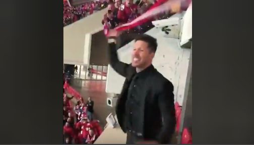 L'allenatore dei 'Colchoneros', costretto in tribuna perché squalificato, sventola la sciarpa della squadra e canta insieme al pubblico allo stadio Wanda Metropolitano. L'Atletico Madrid approda in finale di Europa League dove se la vedrà contro il Marsiglia.