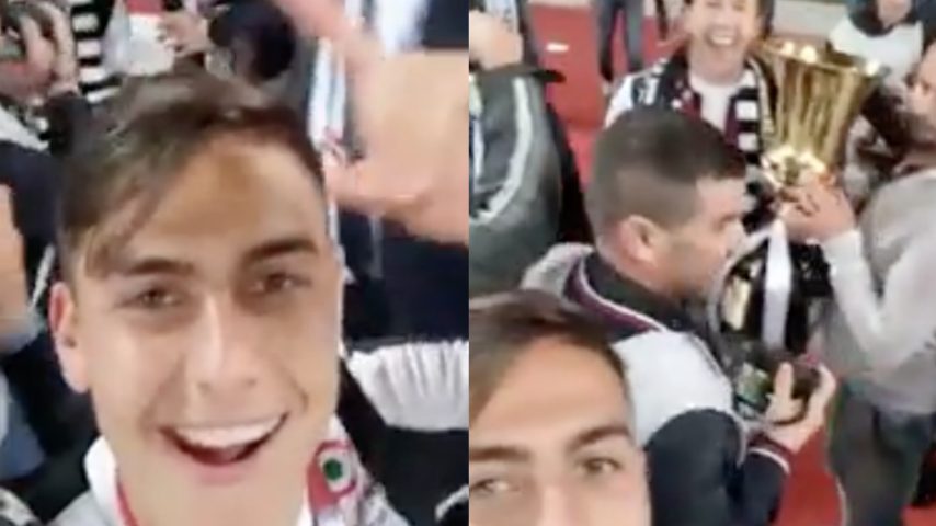“Se lasci il telefono a @PauDybala_JR... #4ZAJUVE " questo il commento sul video pubblicato sul canale ufficiale della Juventus su twitter. Dybala esprime tutta la sua gioia sui social mostrando la coppa nelle mani di un compagno di squadra in seguito al 4-0 sul Milan.