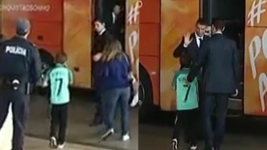 Cristiano Ronaldo si è reso protagonista di un bel gesto. Un bambino si avvicina in lacrime al bus che accompagna i giocatori del Portogallo, desideroso di incontrare il suo beniamino. L’attaccante portoghese così lo abbraccia e lo rincuora, scattandosi una foto con lui e firmando la maglietta.