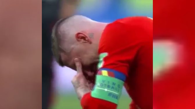 Al temrine dei calcio di rigore contro la Russia, il difensore spagnolo, protagonista nell'azione del vantaggio della Roja nel primo tempo, è letteralmente distrutto e piange.
