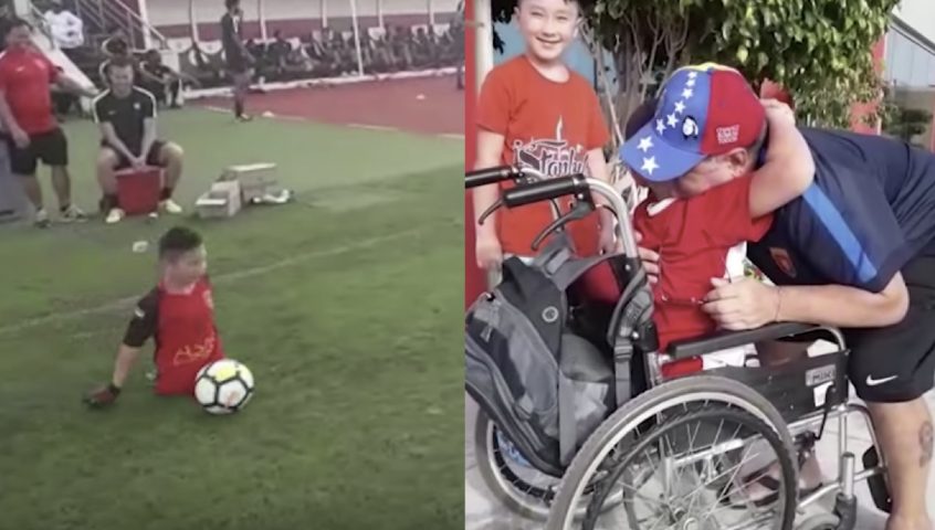 Maradona realizza il sogno del bimbo senza gambe: una scena stupenda