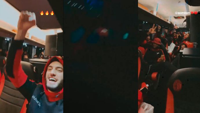 L'autobus del Milan diventa una discoteca, calciatori scatenati dopo la vittoria