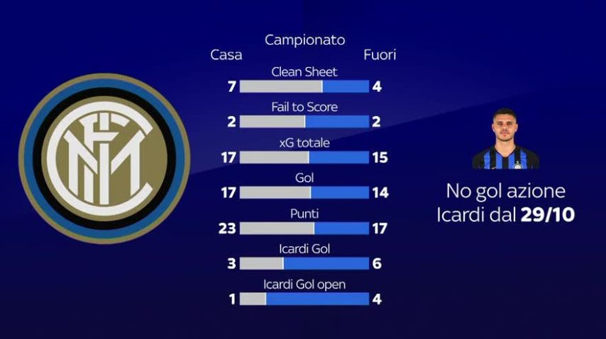 Cosa succede a Mauro Icardi? Perché l'attaccante argentino non è più letale in area di rigore come nella scorsa stagione? Un dato conferma le difficoltà del calciatore, dettate anche dal calo di rendimento di quei giocatori (Perisic) che dovrebbero innescarlo. Rispetto a un anno fa i gol in campionato di Maurito sono diventati la metà: da 18 reti in 20 partite a 9 in 17 gare in questo campionato. A quando risale l'ultima rete in serie A su azione e non da palla inattiva? Al 29 ottobre contro la Lazio. Poi due rigori (Atalanta e Udinese) e un colpo di testa (Roma) su calcio d’angolo.