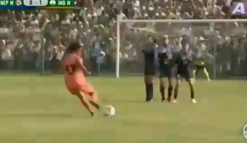 Traiettoria incredibile su calcio piazzato: la palla calciata dalla calciatrice dell'India Aditi Chauhan, nella gara contro il Nepal, si abbassa improvvisamente, proprio come la maledetta di Pirlo, e finisce sotto l'incrocio dei pali.