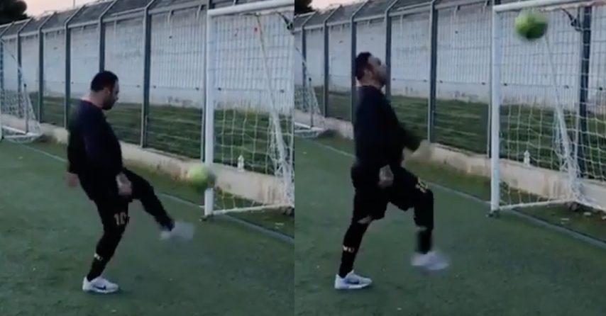 Miccoli come Ronaldinho: palleggia e colpisce la traversa a ripetizione e poi sfida Evra