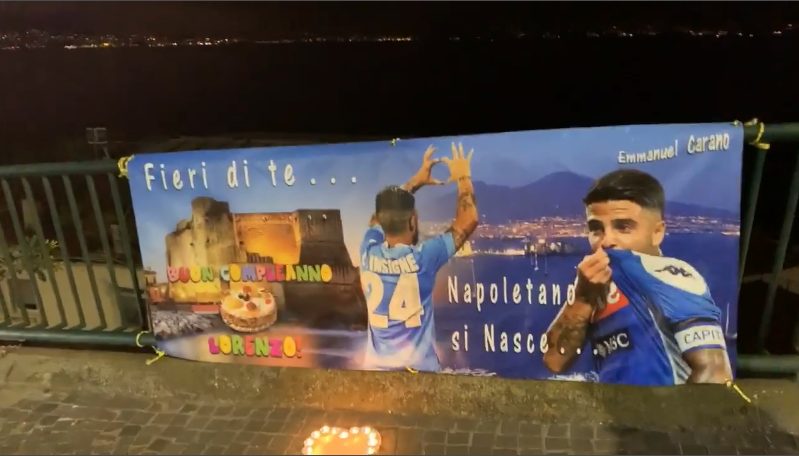 Nei pressi dell'abitazione di Insigne a Posillipo, compare questo striscione di auguri. Un omaggio al capitano che oggi compie 29 anni.