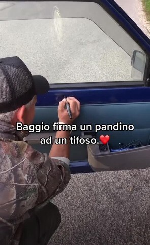 Un tifoso incontra Roberto Baggio per strada e gli fa un'insolita richiesta chiedendogli di firmare due autografi sulla sua Fiat Panda: uno nella parte interno dello sportello e un altro sul cofano. Il Divin Codino accetta divertito e al termine del simpatico siparietto con il suo fan scherza: "Abbiamo rovinato un'altra macchina - dice al tifoso che invece risponde - No, ora è incedibile".