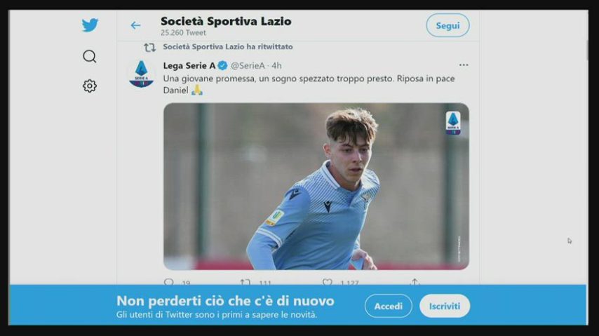 Il cordoglio del mondo del calcio per la morte di Daniel Guerrini, 19enne calciatore delle giovanili della Lazio deceduto in un incidente stradale.