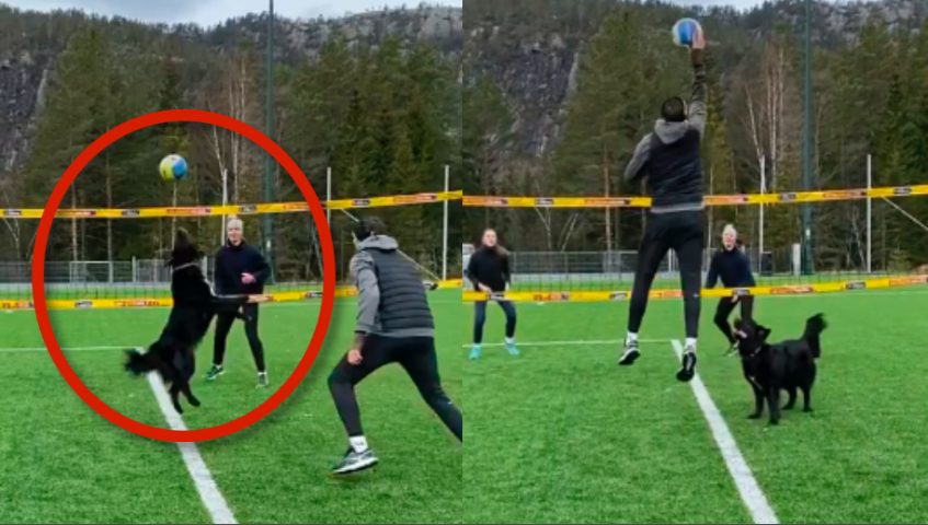 Cane fenomeno della pallavolo: alza la palla in maniera perfetta per la schiacciata