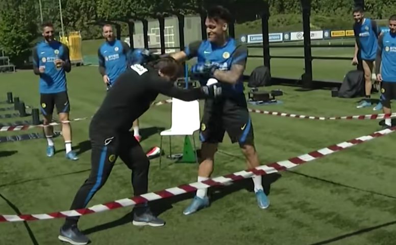 Conte e Lautaro fanno pace simulando un incontro di boxe