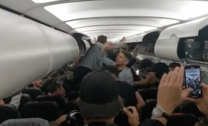 Dopo la vittoria contro il Belgio, gli azzurri cantano in aereo per Spinazzola. Il terzino è rimasto infortunato durante la partita.