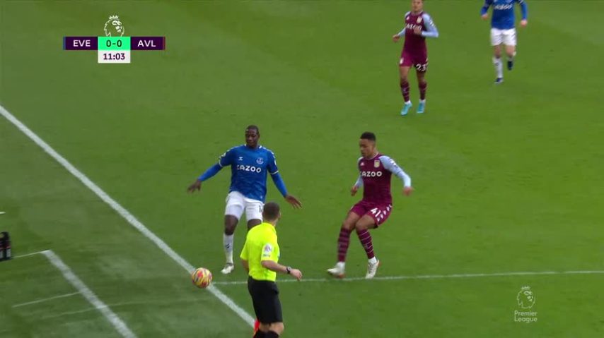 Contatto di gioco abbastanza ruvido, quello avvenuto nel corso della sfida di oggi a Goodison Park tra Everton e Aston Villa. Il centrocampista dell'Everton Abdoulaye Doucouré scivolando si è 'aggrappato' alla maglia di Jacob Ramsey strappandogli la maglietta.
