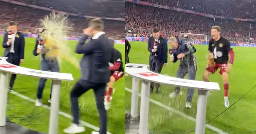 Nel corso dei festeggiamenti del Bayern Monaco, campione di Germania, Thomas Müller prende di mira Bastian Schweinsteiger che in quel momento stava commentando per la tv. L'attaccante bavarese lo inonda con un grosso boccale di birra.