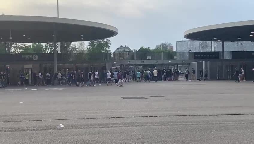 Sono in centinaia i tifosi nerazzurri che a fine primo tempo lasciano lo stadio di San Siro. Con l'ormai quasi certa vittoria del Milan a Sassuolo, l'Inter non ha speranze e non può più vincere il titolo.