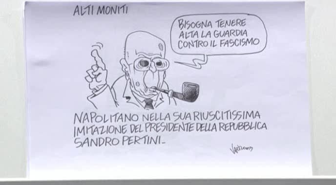Come sempre la trasmissione di Santoro "Servizio Pubblico" termina con le vignette satiriche sulla politica italiana realizzate da Vauro