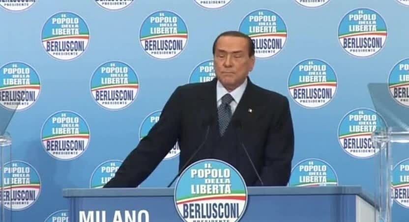 0:27 Berlusconi inciampa e cade dal palco durante il comizio
