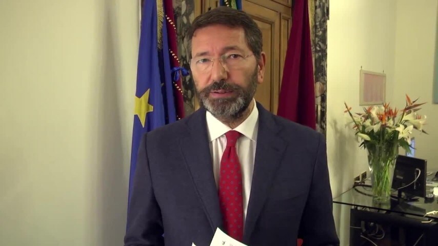 3:47 Torre dei Conti, l'operaio supravvissuto al crollo depone una corona in ricordo di Octav Stroici