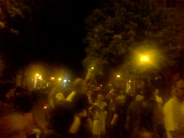 Piazza Bellini, Napoli, tradizionale ritrovo di parte della sinistra: festeggiamenti e l'immancabile "Bella Ciao" intonata per festeggiare la vittoria del No al referendum in Grecia.
