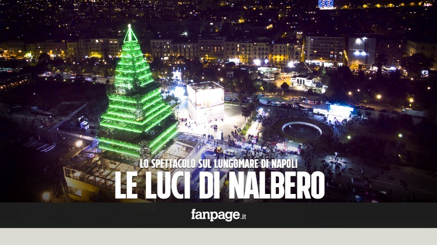 Lo spettacolo luminoso di Nalbero visto dalla telecamera del drone sul lungomare di Napoli. La struttura realizzata dal Comune per le festività natalizie è alta quaranta metri e offre a migliaia di spettatori uno spettacolo di luci costante. Un albero di Natale fatto di luminarie che si accendono e cambiano colore a intermittenza.