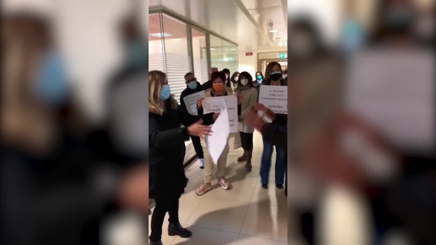 Dopo la diffusione della notizia che il commissario alla Sanità della Calabria Guido Longo ha autorizzato il vaccino per i dipendenti del dipartimento Salute della Regione, un gruppo di lavoratori di altri uffici si presenta davanti alla porta del commissario per protestare. Segue un intenso faccia a faccia che si conclude con la promessa di Longo: "Entro i prossimi dieci giorni vaccineremo anche tutti gli altri dipendenti regionali"