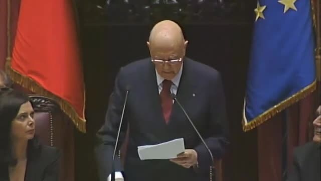 Dopo essere stato eletto per un secondo mandato da Presidente della Repubblica, primo nella storia italiana, Giorgio Napolitano si presentò commosso in Parlamento. Ma il suo discorso fu anche molto duro: parlò di omissioni e guasti e ammonì i deputati e senatori, richiamando l'eccezionalità della sua rielezione.