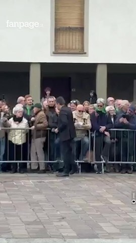 Funerali di Bossi, Salvini contestato a Pontida: “Vergogna, molla la camicia verde”