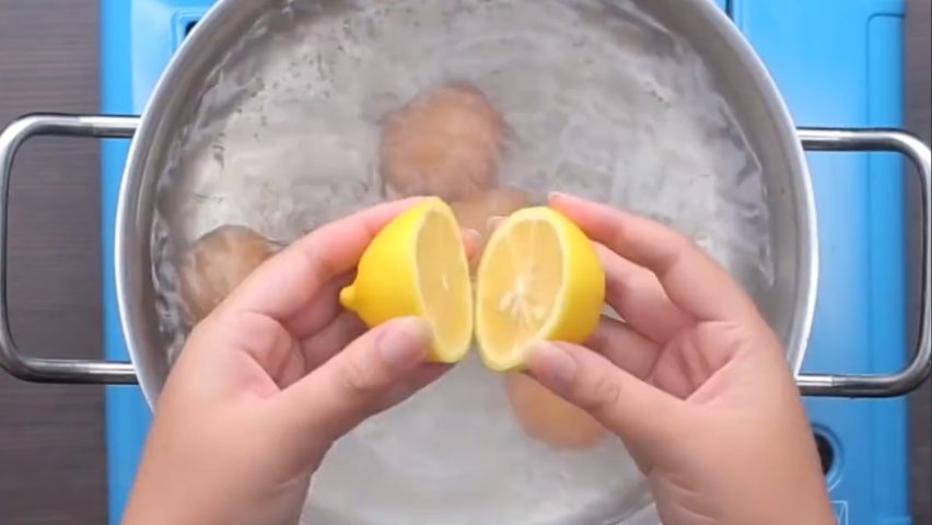 Questo trucchetto semplicissimo vi permetterà di ottenere uova sode perfette e sgusciarle facilmente; tagliate a metà un limone, spremetene il succo nell'acqua di cottura poi mettetelo nella pentola con le uova.