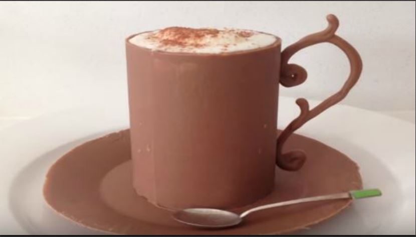 Bella da guardare e golosa da mangiare, una tazza realizzata con il cioccolato. Usando un piattino e una bottiglia realizza le varie parti per poi unirle facendo sciogliere un pò di cioccolato che funge da colla.Fonte: https://www.youtube.com/watch?v=0nPloAGfn_A