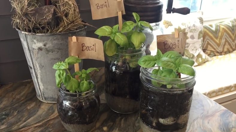 Piantine di basilico nei barattoli di vetro: un modo utile e originale per riciclarli