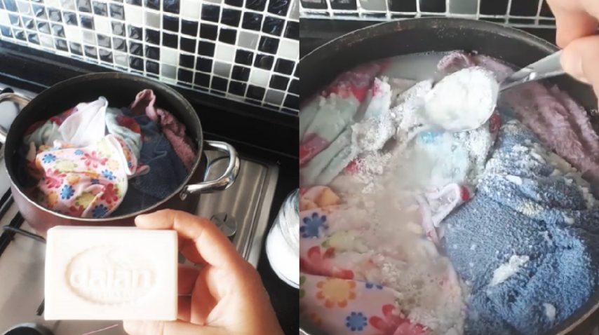 Un metodo naturale ed efficace per pulire e disinfettare i panni da cucina. Riempite d'acqua una vecchia pentola e mettete i panni, poi versate 1 cucchiaio di sapone grattugiato. Portate a ebollizione poi lasciate raffreddare completamente. Sciacquate con acqua fredda e fate asciugare.