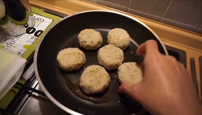 Tagliare a dadini patate e malanzane. Cuocerle in acqua bollente. Unire e schiacciare, aggiungere il parmigiano, la cipolla, l’aglio, il prezzemolo e il pan grattato. Salare. Impastare il tutto formare le nostre polpette. Cuocere in padella con un filo d’olio o in forno.