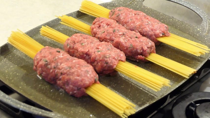 Spaghetti infilati nella carne macinata per una ricetta "strana" ma molto gustosa